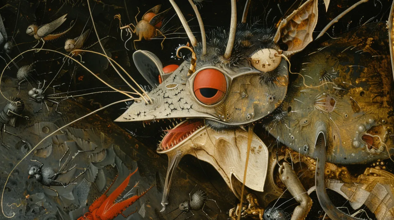 Bosch często wykorzystywał motyw hybrydy - istot łączących cechy ludzi, zwierząt i przedmiotów. Te fantastyczne stworzenia mogły symbolizować demony, pokusy lub ludzkie wady. Na przykład, postać z głową ptaka mogła oznaczać głupotę, a człowiek z ciałem ryby - lubieżność.